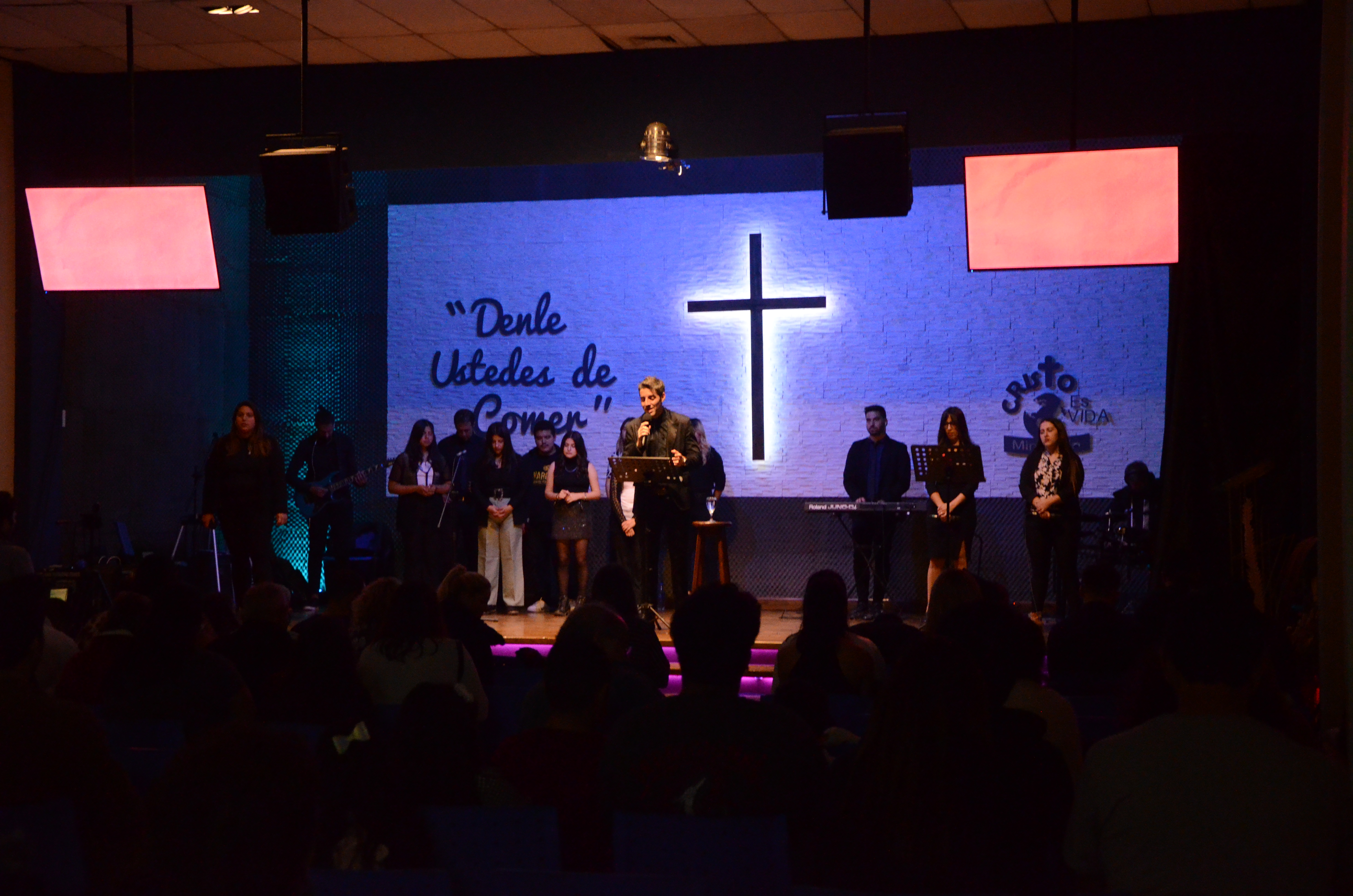 Luego, comenzamos con la alabanza, donde los jóvenes que deseen participar pueden tocar música.